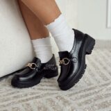 100% genuine leather loafers with embossed croco layer. 3.5 cm wooden heel reinforced with expanso and groupon, combining elegance, lightness, and comfort.
