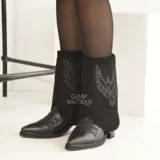 100% genuine leather boots with unique handcrafted embroidery. Featuring a 5.5 cm wooden heel reinforced with expanso and groupon for style, stability, and lightweight comfort.